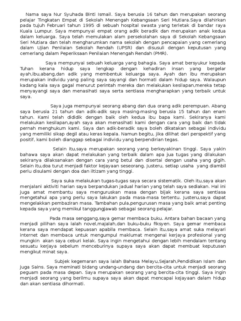 Karangan Bahasa Inggeris Tentang Diri Saya